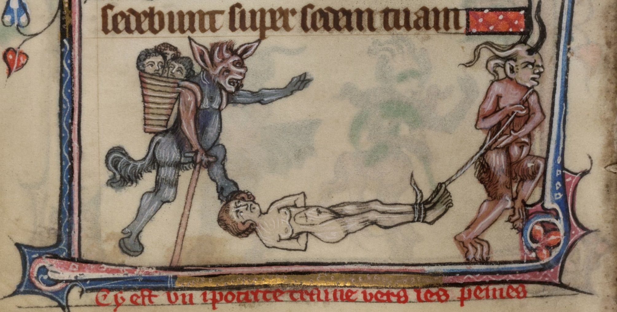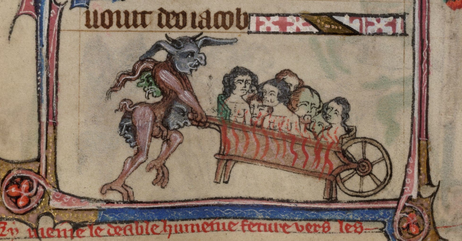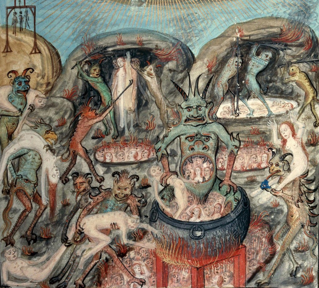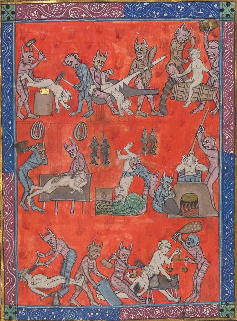 Nas imagens da morte, os demónios mostram-se sôfregos e irrequietos. É plausível que a maioria das almas se destine ao inferno. Mas o diabo é insaciável. Os demónios não param de disputar almas, de as transportar e de as infernizar. Andam atarefados numa azáfama interminável. As imagens do inferno condizem: uma turbulência tórrida em que as almas sofrem e os demónios trabalham. Os infernos de Herrad von Landsberg e do Missal de Raoul du Fou propiciam um bom exemplo: os diabos torturam, carregam, empurram, grelham, fritam, cozem e comem as almas danadas.