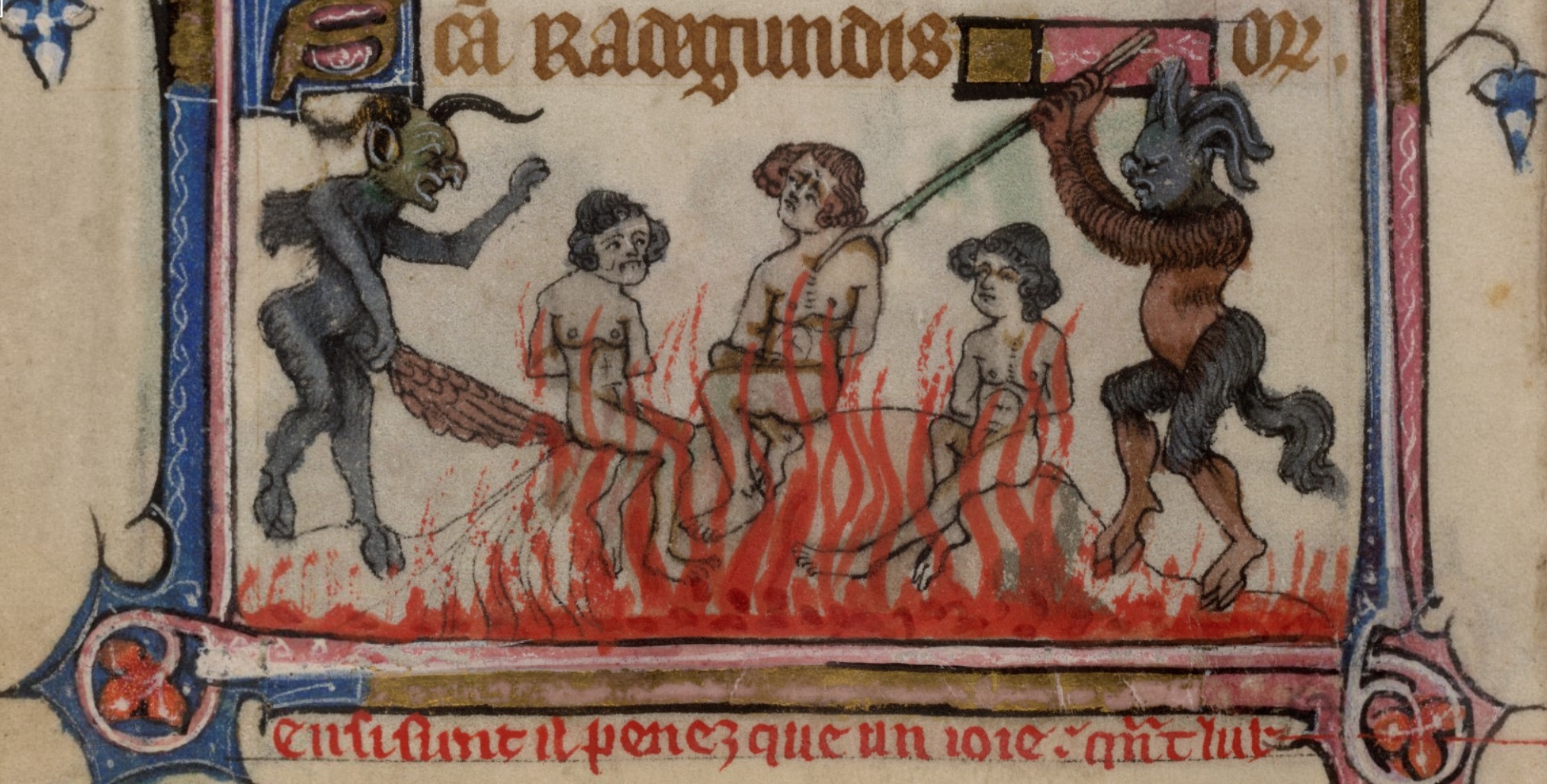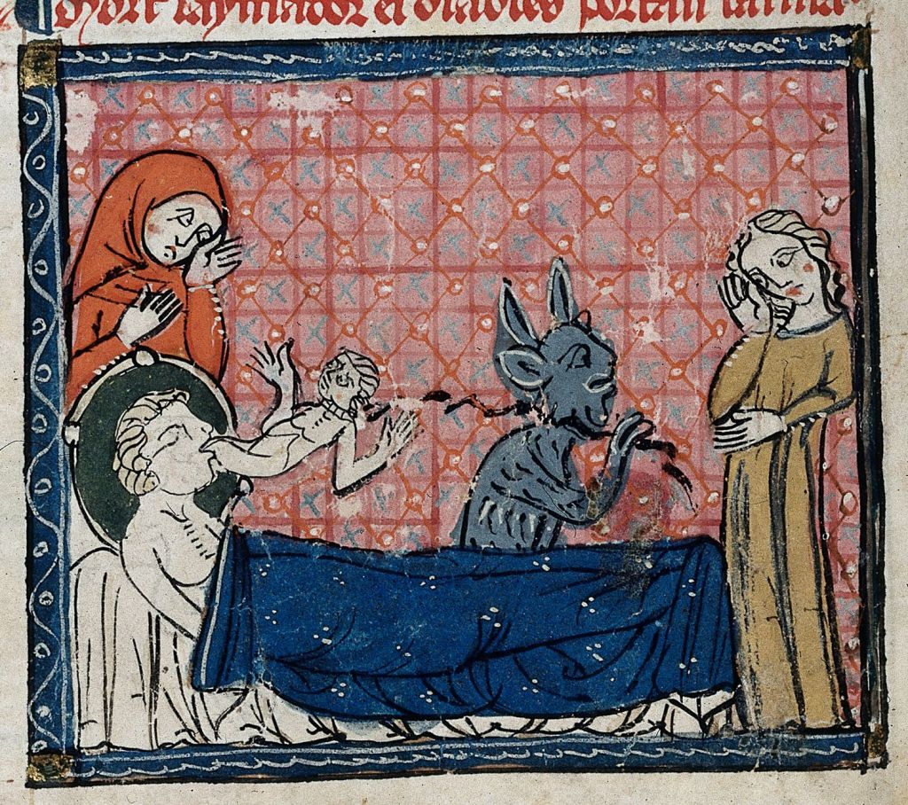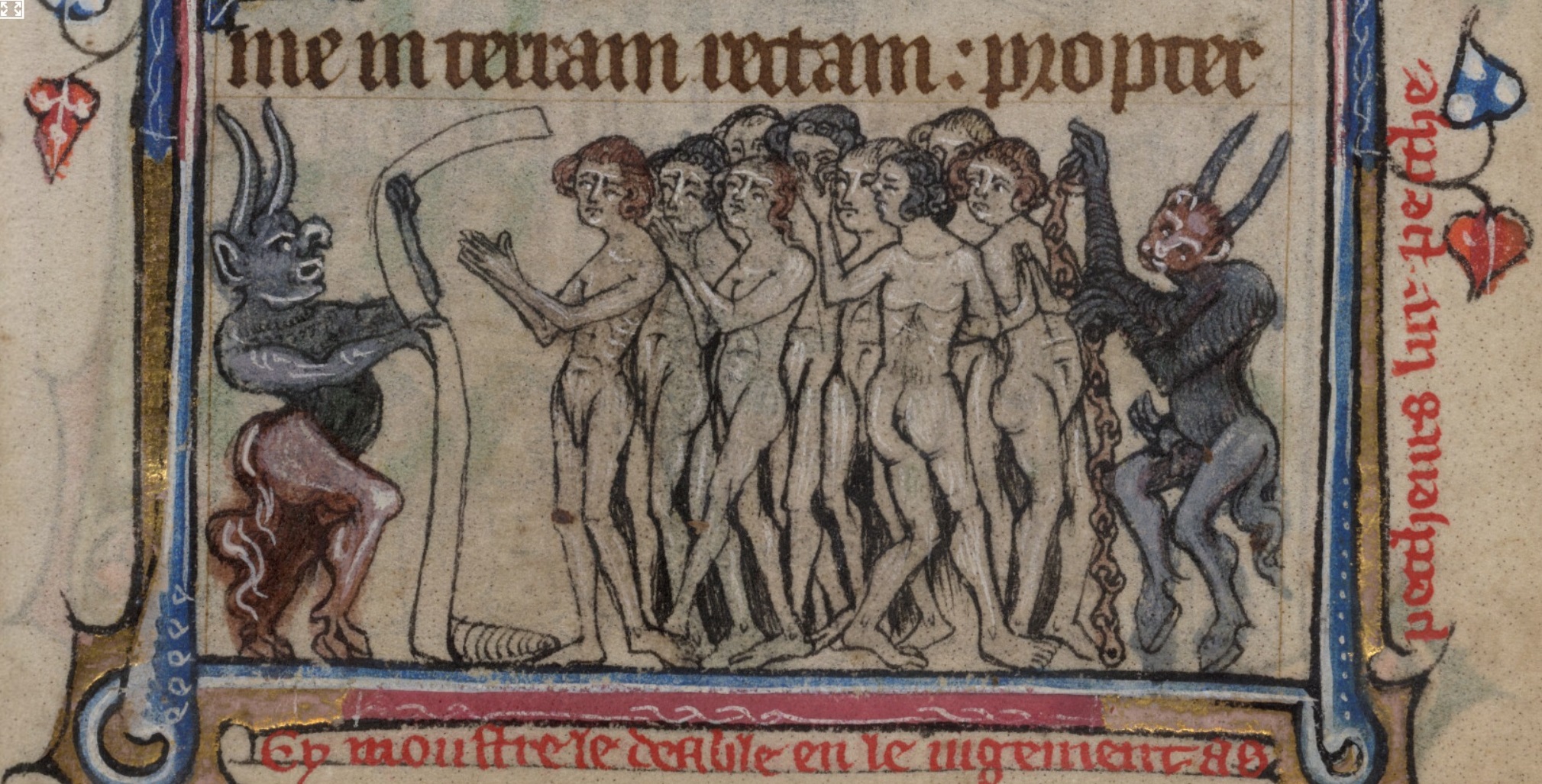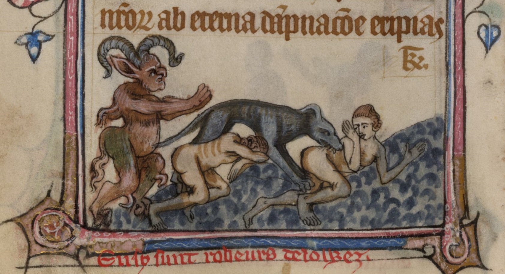 Nas imagens da morte, os demónios mostram-se sôfregos e irrequietos. É plausível que a maioria das almas se destine ao inferno. Mas o diabo é insaciável. Os demónios não param de disputar almas, de as transportar e de as infernizar. Andam atarefados numa azáfama interminável. As imagens do inferno condizem: uma turbulência tórrida em que as almas sofrem e os demónios trabalham. Os infernos de Herrad von Landsberg e do Missal de Raoul du Fou propiciam um bom exemplo: os diabos torturam, carregam, empurram, grelham, fritam, cozem e comem as almas danadas.