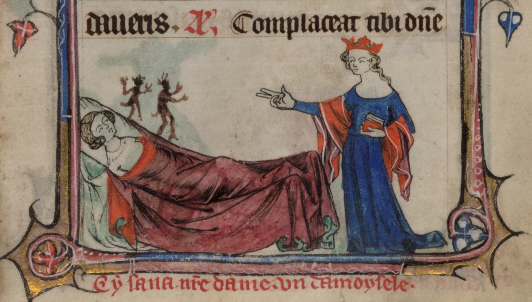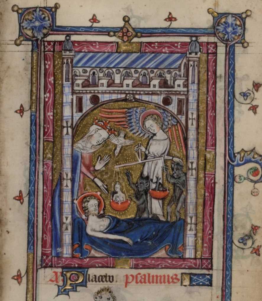O livro de salmos de Luttrel, um dos livros de oração mais antigos e célebres, guardado na British Library (Add. MS 42130), é composto por 309 páginas (350 x 245mm) em pergaminho, ilustradas por uma sequência apreciável de imagens sagradas, monstros híbridos e cenas da vida quotidiana. Criado provavelmente entre 1325 e 1335 na diocese de Lincoln por encomenda de Sir Geoffrey Luttrell (1276 –1345), de Irnham, o texto foi escrito por um copista e as iluminuras foram desenhadas por pelo menos cinco artistas diferentes.