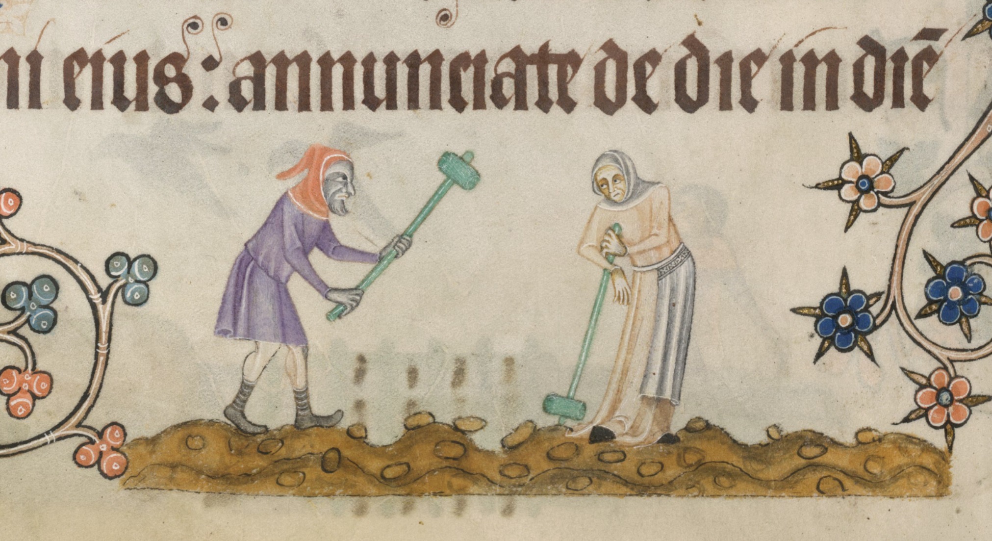 Galeria com gravuras das margens do livro de Horas de Taymouth. 1325-1335. British Library. Yates Thompson MS 13.