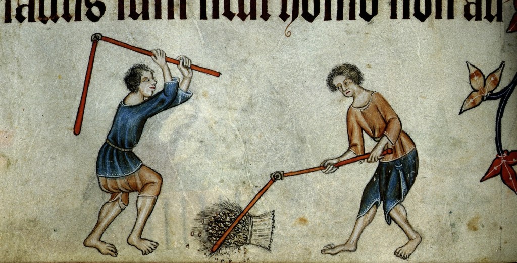 Procedemos, morosa e pacientemente, à montagem, em forma de caderno, de trinta páginas do saltério de Luttrell. O resultado espelha-se na apresentação de diapositivos (PowerPoint) disponibilizada para descarga a que acresce uma galeria de imagens com atividades da vida quotidiana. É um gosto partilhá-las. É possível o acesso à digitalização integral do saltério de Luttrell no seguinte endereço da British Library: https://www.bl.uk/manuscripts/Viewer.aspx?ref=add_ms_42130_fs001ar