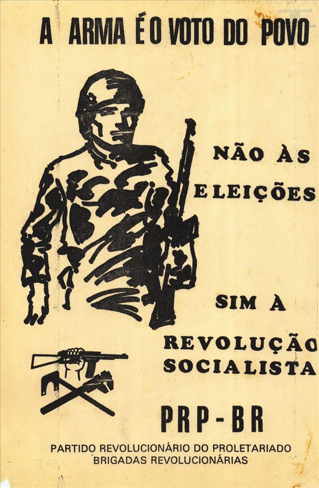 Muito diferentes entre si, estes e outros movimentos convergiam na legitimação da luta armada contra as estruturas de poder e figuras a elas associadas, embora divergissem, frequentemente, no matiz ideológico que os inspirava. Um cartaz do PRP-BR sintetiza a convergência: “A arma é o voto do povo”, proclama, acrescentando, “Não às eleições. Sim à Revolução Socialista”. Justificavam-se assim as ações armadas contra os símbolos e as figuras do poder, onde se incluem assaltos a bancos, sequestros ou assassinatos de figuras políticas ou ligadas à alta finança e indústria.