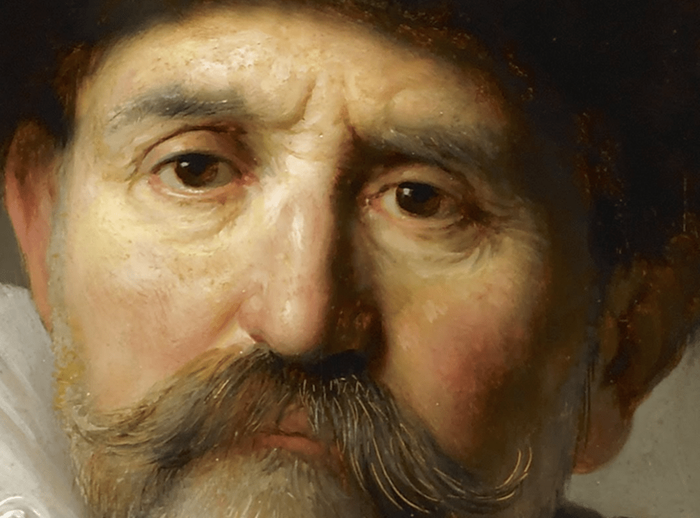 “E retratos, retratos espetaculares (…) Rembrandt não compreendia apenas os seus ricos clientes e a imagem que pretendiam projetar de si mesmos, ele também foi um manipulador virtuoso da pintura. Ninguém enxergou melhor a topografia das pálpebras da meia-idade, a oleosidade de um próspero nariz, a lacrimosa membrana vítrea dos olhos, a reluzente tensão de uma testa puxada para trás numa touca de linho. Observe o retrato de uma mulher com 83 anos na Galeria Nacional de Londres. Observe o tecido translúcido da touca alada, as bordas pintadas com uma única pincelada. Observe as suas sobrancelhas e as pálpebras caídas, feitas com pinceladas picantes, a melancolia levemente desfocada, o temperamento de vulnerabilidade pungente, o conjunto a suavizar a face de uma velha raposa, com a certeza ansiosa de que não demorará muito a encontrar o grande contador do céu. Não é, portanto, apenas um pintor, mas um psicólogo da condição humana, não concorda? Em que consiste a obra dos outros grandes vultos, Velásquez, Rubens, Van Dyck? Pintar máscaras, o olhar estudado de princesas e papas. Conhecem de antemão, muito bem, a máscara do dia: decisão marcial, preocupação majestosa, melancolia pensativa. Mas Rembrandt vê por detrás da pose e é isso que contribui para que os seus retratos nos toquem como os de mais ninguém. Podemos ver as pessoas a exibir as suas faces ao mundo. Mas isso não as diminui, antes lhes acrescenta simpatia” (Simon Schama. Rembrandt. Power of Art 3/8. BBC. 2006).
