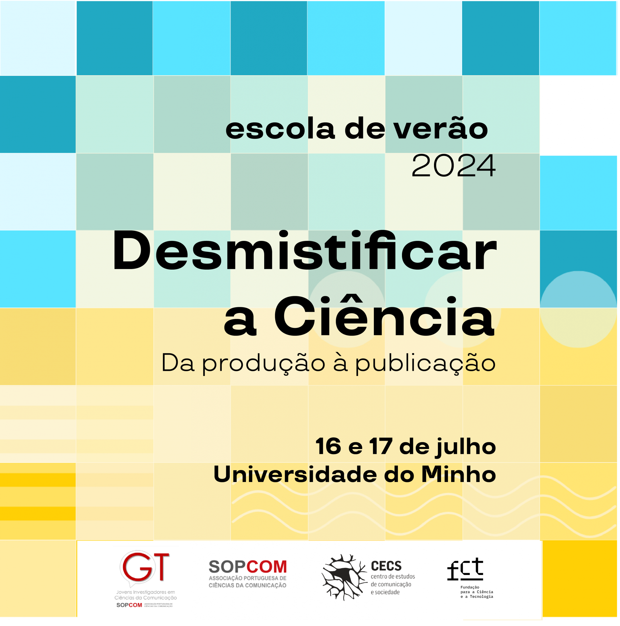 A 5ª edição da Escola de Verão do Grupo de Trabalho de Jovens Investigadores da Associação Portuguesa de Ciências da Comunicação terá lugar nos dias 16 e 17 de julho de 2024, no Instituto de Ciências Sociais, na Universidade do Minho e subordina-se ao tema “Desmistificar a Ciência: Da Produção à Publicação”.